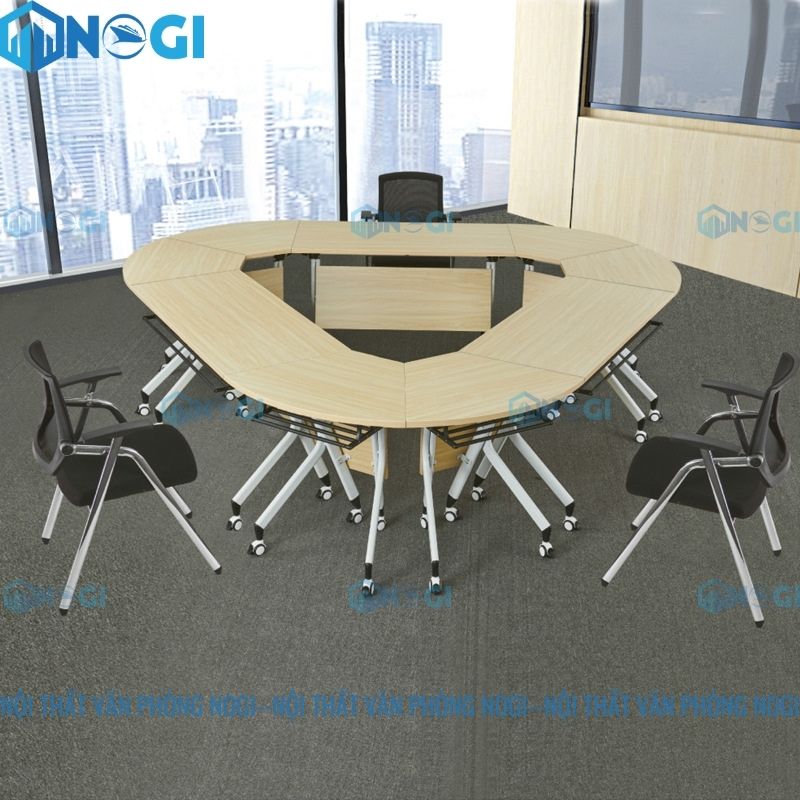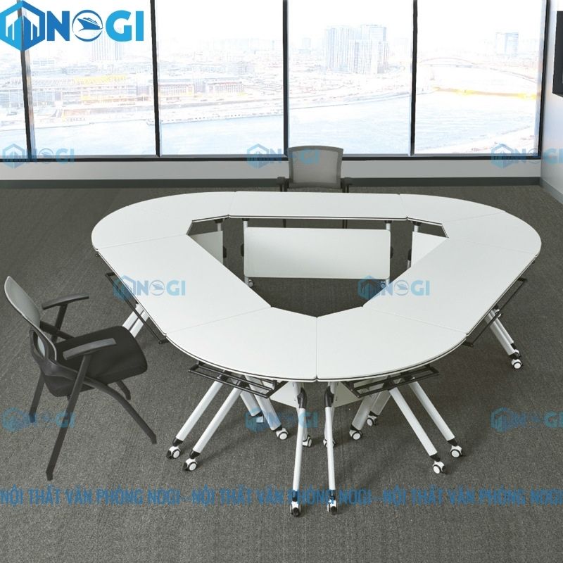 Bàn gấp gọn thông minh BTM11-B với chất liệu gỗ công nghiệp MFC chân sắt bền đẹp đến từ thương hiệu nội thất OEM nổi tiếng. Sản phẩm có thiết kế tinh tế, có thể gấp lại và di chuyển, thích hợp sử dụng trong không gian chung như phòng họp, phòng training.