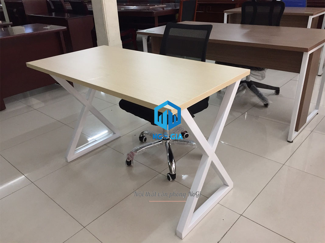 - Bàn làm việc đơn giản BLV06 có kiểu dáng hiện đại, đơn giản, phần chân chữ X chắc chắn, chịu lực tốt.