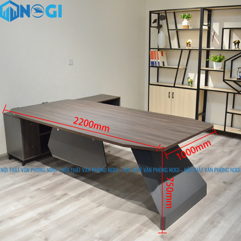 Bàn Giám Đốc NAMI kích thước 22000 x 1000 x750 là sản phẩm cao cấp với chân sắt sơn tĩnh điện mặt bàn gỗ đạt tiêu chuẩn có kèm tủ phụ bên cạnh.