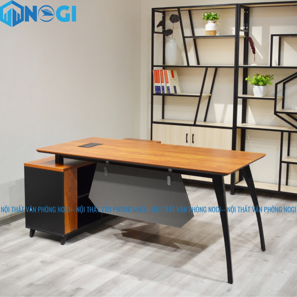 Bàn Giám Đốc BROK kích thước 1600 x 800 x750 là sản phẩm cao cấp với chân sắt sơn tĩnh điện mặt bàn gỗ đạt tiêu chuẩn có kèm tủ phụ bên cạnh.