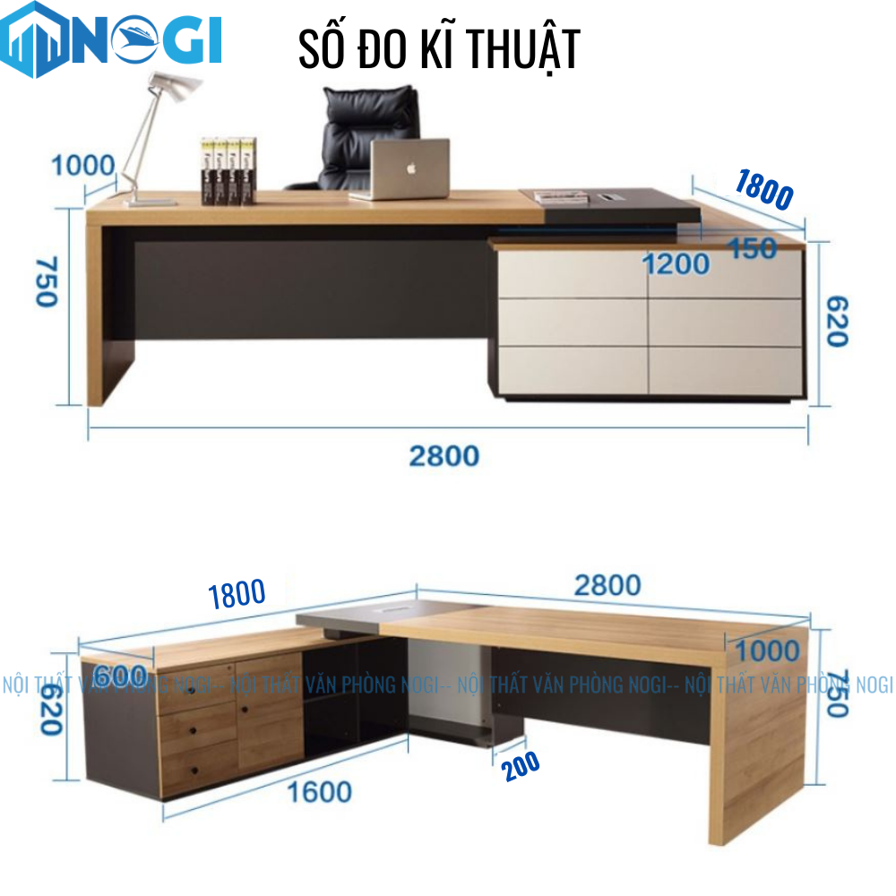 Sản phẩm bàn giám đốc MAYA BLD21 kích thước 2800 x 2000 x 750
