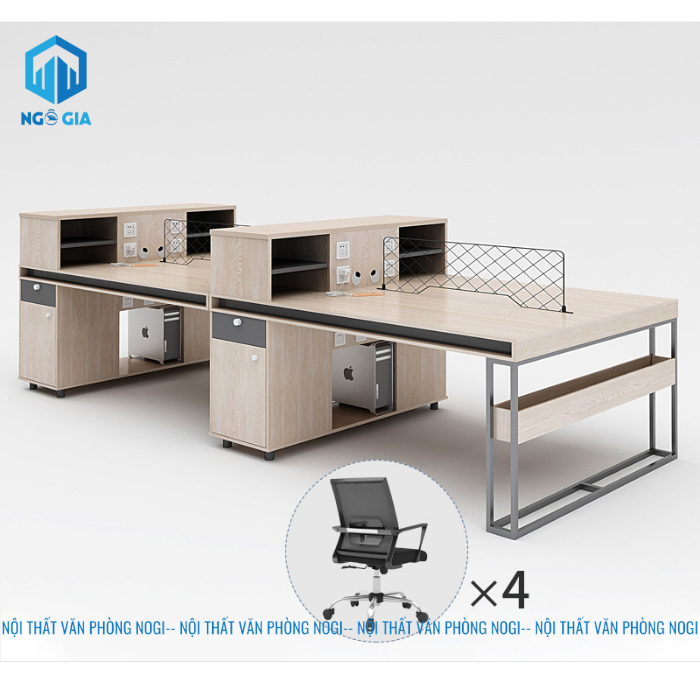 - Mặt bàn có thể lắp thêm vách ngăn bằng sắt giúp tạo không gian riêng tư cho từng người khi làm việc