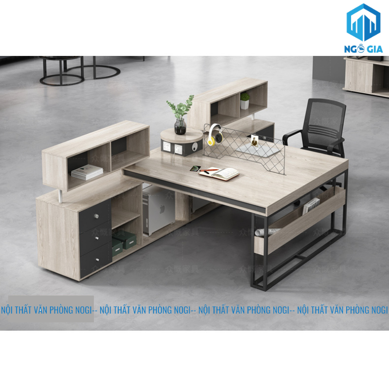 - Bàn có chân bằng khung thép tính thẩm mỹ cao, dọc theo chân bàn có lắp kệ tạm dùng để tài liệu, giấy tờ bình thường
