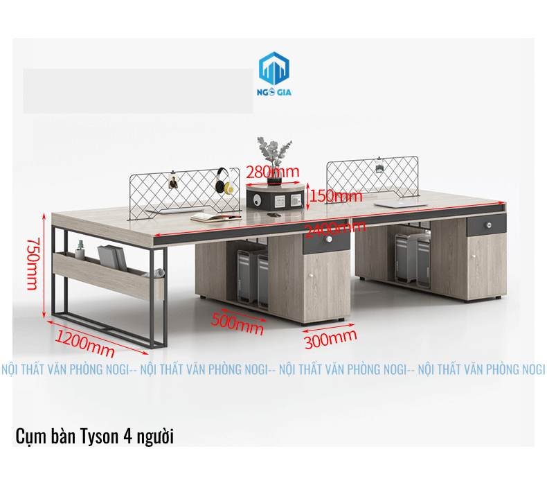 - Bàn làm việc 4 người Tyson BLV30 là kiểu bàn chân khung thép cao cấp