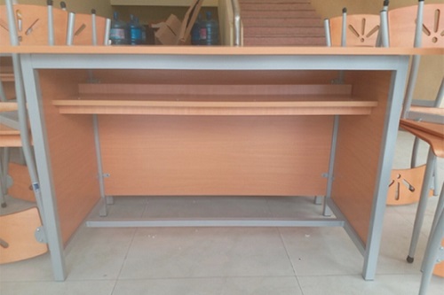 - Bàn trơn, không hộc. Yếm quây được sử dụng chất liệu gỗ Melamine cao cấp. Ngăn dưới ở mặt bàn tạo hộc nhỏ để đồ dùng cá nhân hoặc tài liệu giảng dạy