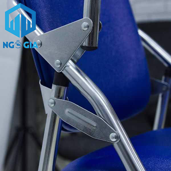 - Phần ghế: Thiết kế khung thép rỗng sơn tĩnh điện màu xám hoặc đen. Chân khung ống kích thước Ø22. Đệm và tựa ghế được bọc vải hoặc PVC tạo sự thoải mái cho người ngồi.