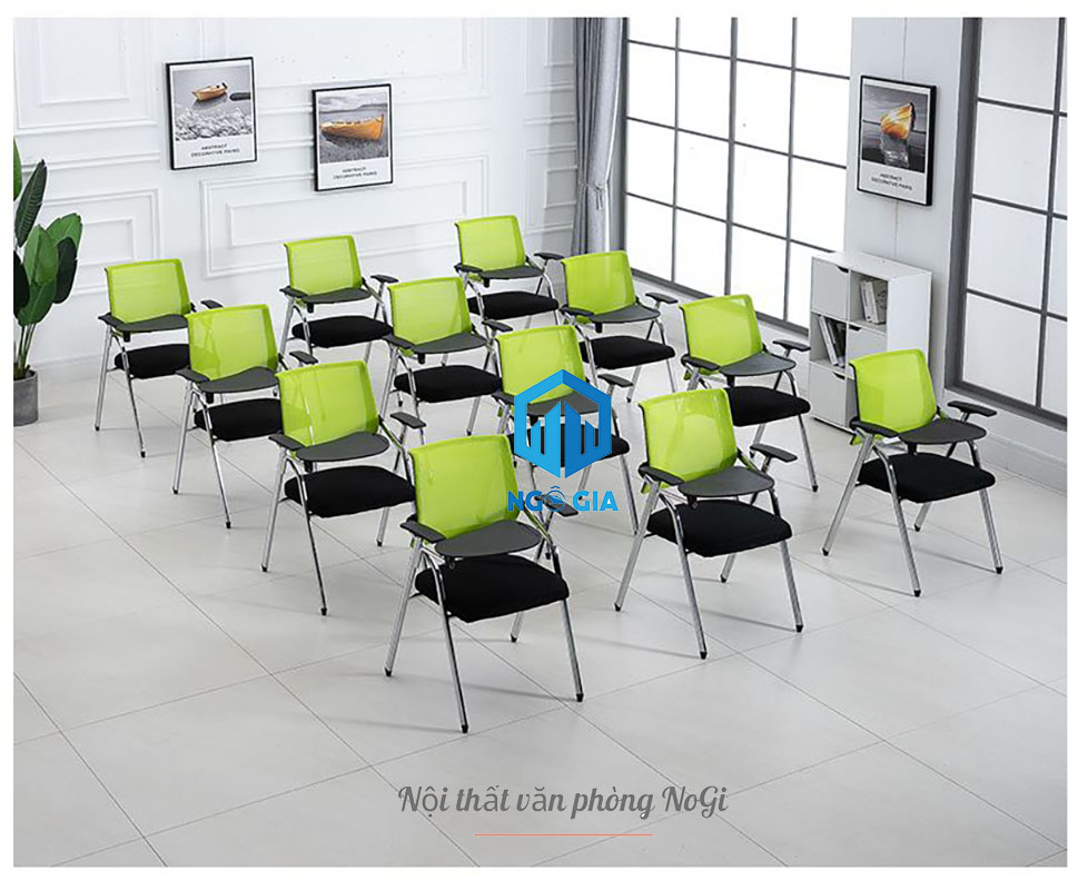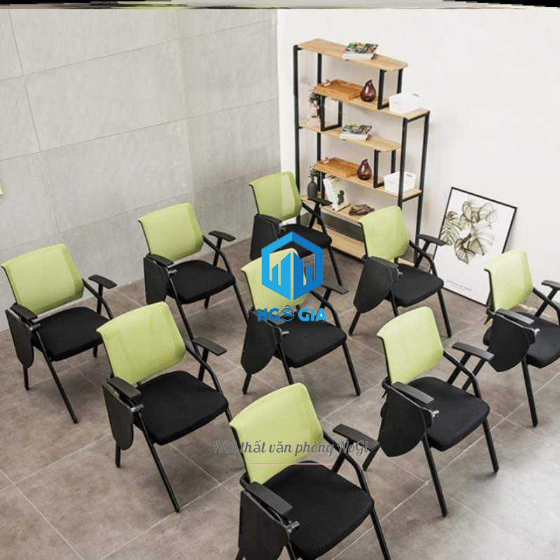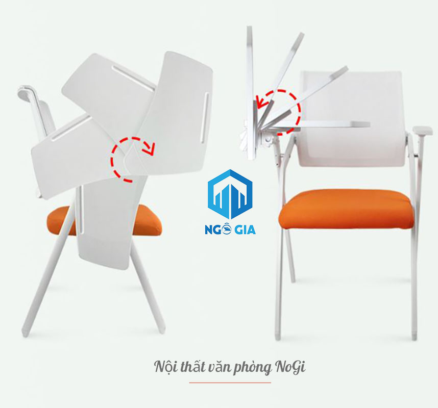 - Ghế có mặt bàn nhỏ, khe đựng bút và chỗ đựng cốc nước siêu tiện lợi