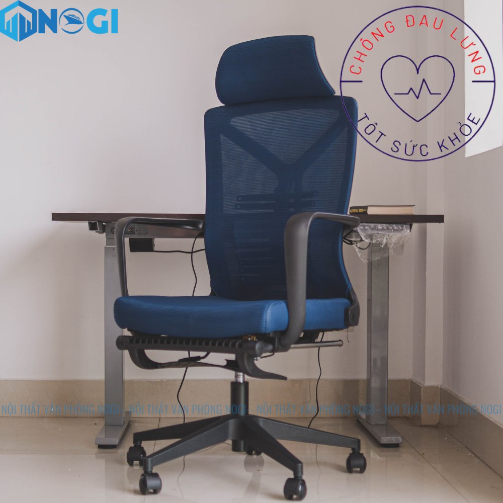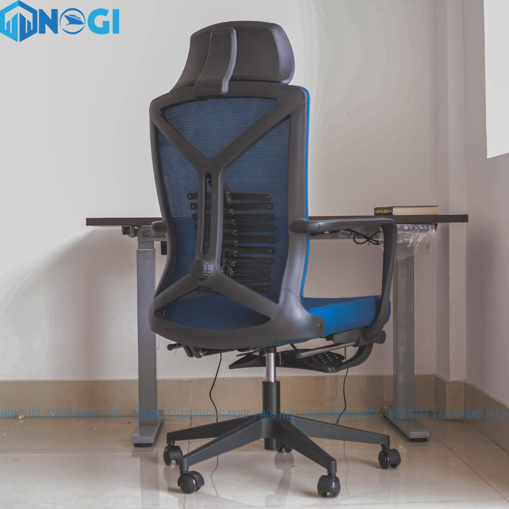 - Lưng tựa cao bằng lưới với phần lõm ôm sát lưng, bảo vệ cột sống cho người dùng