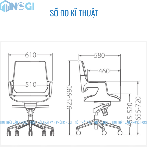 - Chân ghế bằng hợp kim nhôm cao cấp với bánh xe PP trơn tru, không tạo tiếng ồn khi di chuyển.