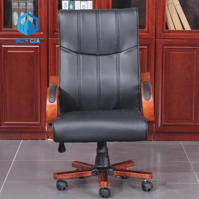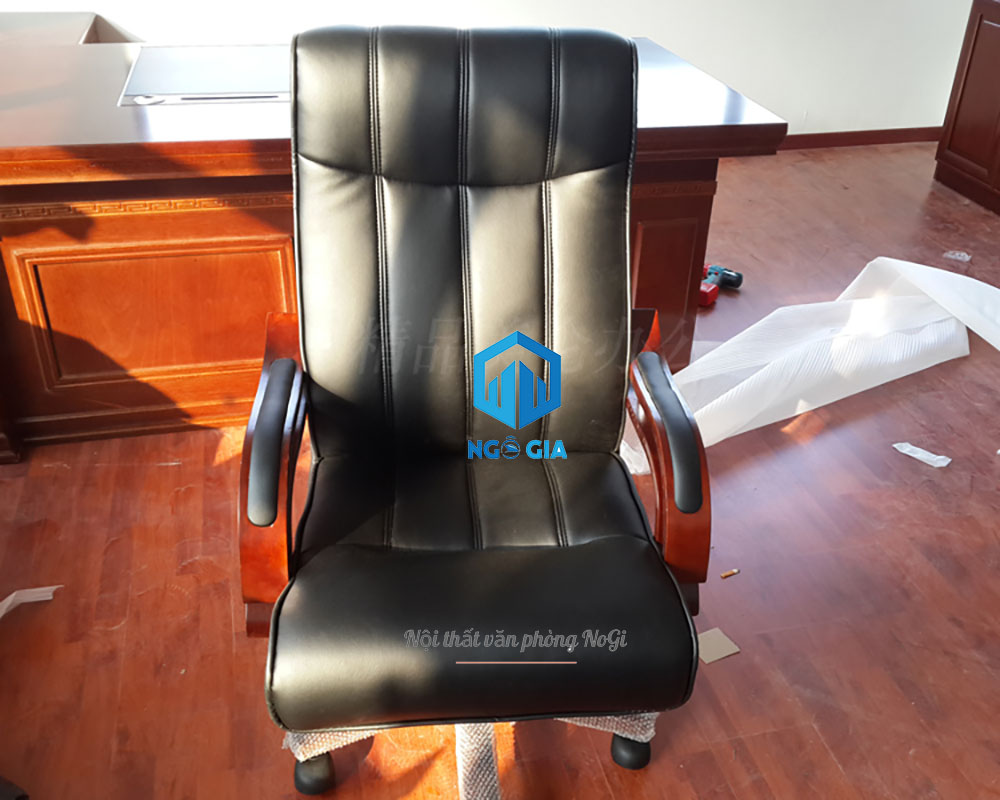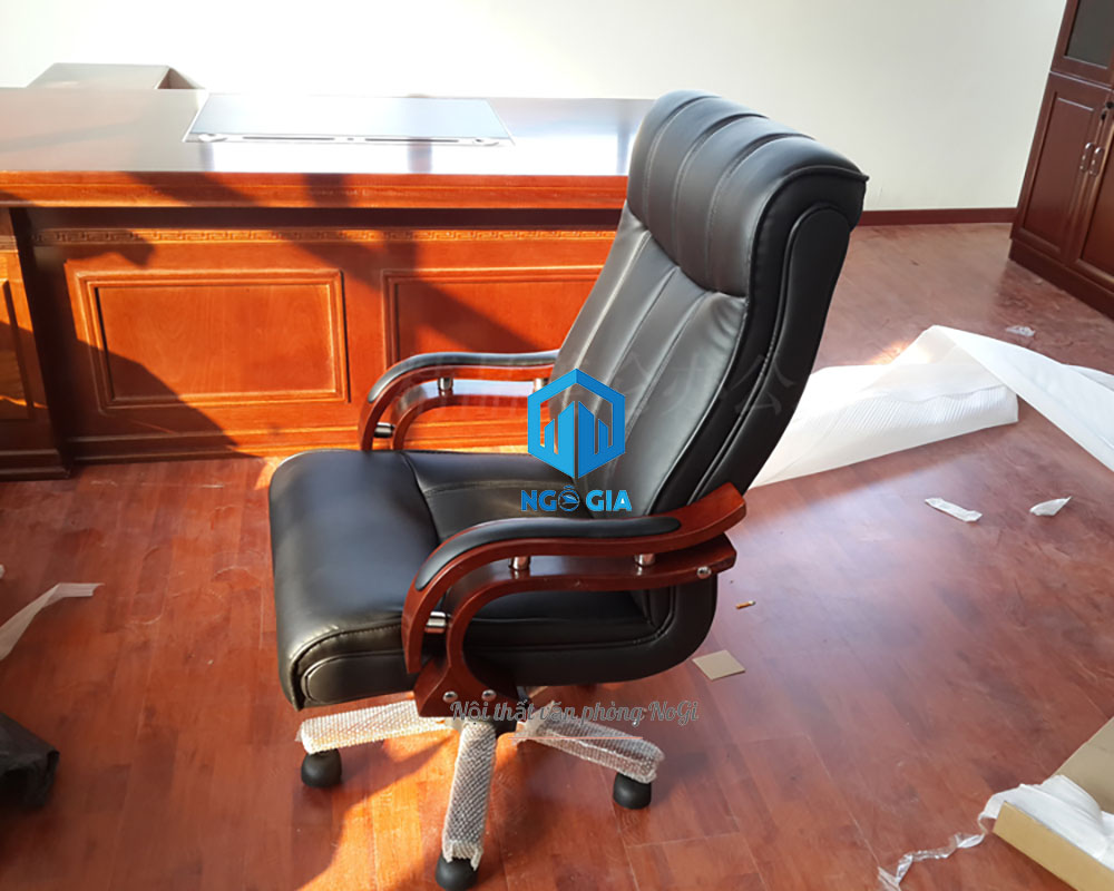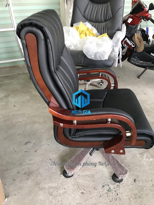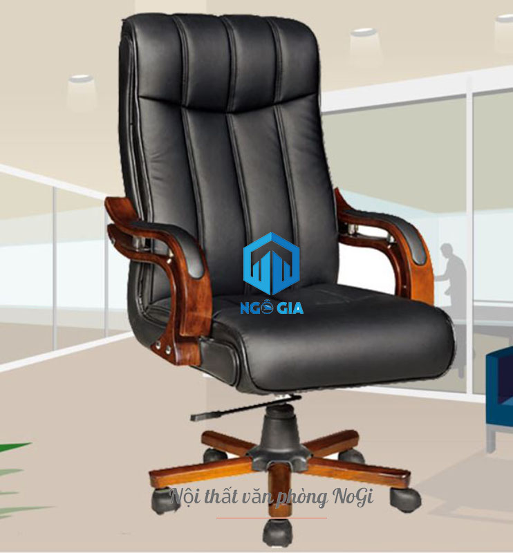 - Ghế lãnh đạo NOGIGD14 có thiết kế tay vịn uốn cong mềm mại ốp gỗ tự nhiên đã qua xử lý bọc da PU sang trọng, tạo điểm nhấn nổi bật cho sản phẩm.