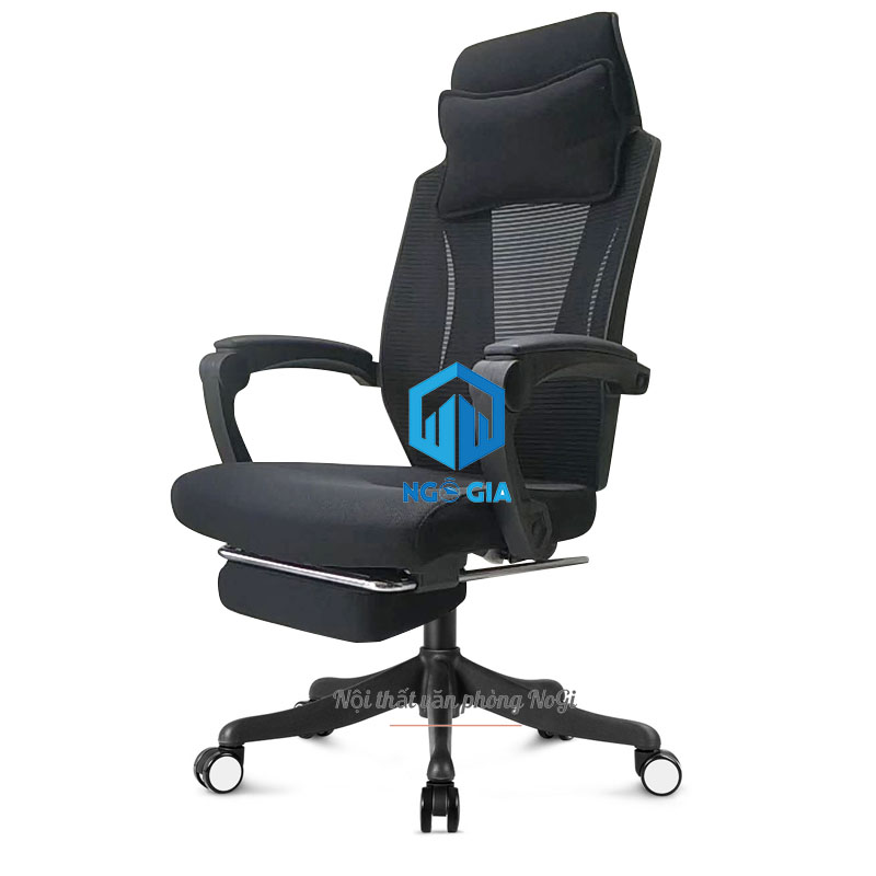 - Khung tựa ghế bằng nhựa được bọc vải lưới chịu lực, bền chắc, thoáng mát, chống tích nhiệt. Tựa đầu ghế bọc lưới có thể điều chỉnh vị trí tùy ý khi sử dụng.