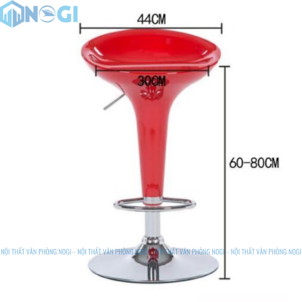 - Lưng ghế được làm từ nhựa ABS cao cấp, chân thép mạ có thể nâng hạ từ 60-80cm