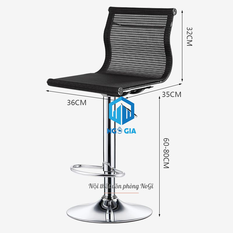 - Ghế bar lưới BAR09 chân ghế thép mạ sang trọng, đệm ngồi bọc vải lưới thông khí tốt