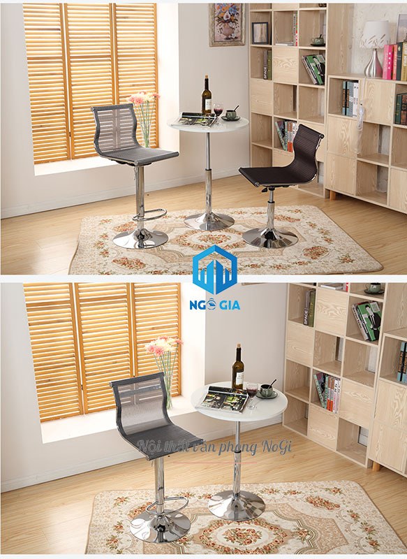 - Ghế quầy bar tphcm chân sắt BAR09 xoay tự do 180 độ và tùy chỉnh độ cao thích hợp khi ngồi, chân thấp hay cao tuỳ vào nhu cầu của người dùng.