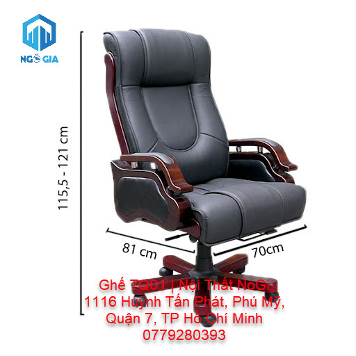 - Ghế da cao cấp TQ01 có tay bằng gỗ được ốp da dài hài hòa với tổng thể.