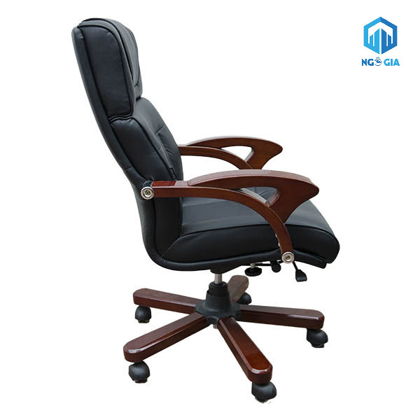 - Tay ghế bằng gỗ tự nhiên với thiết kế đặc biệt thuận tiện cho người sử dụng. Ghế xoay da TQ10 có 5 chân thép ốp gỗ tự nhiên có bánh xe có thể dễ dàng di chuyển trong không gian văn phòng.