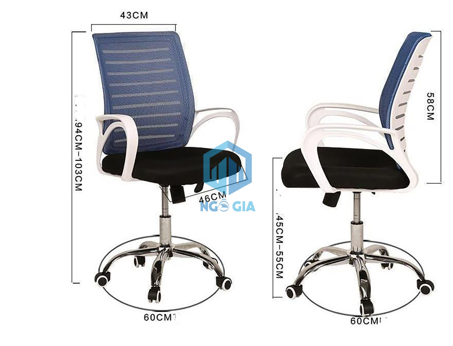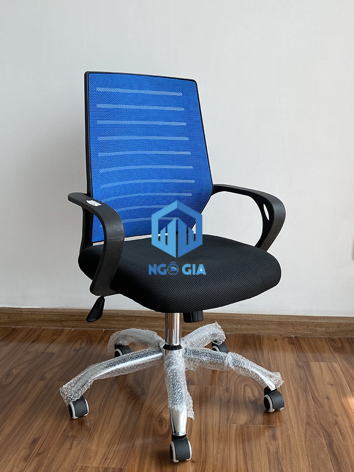 - Chân ghế bằng thép mạ, thiết kế 5 sao và có hệ thống bánh xe đi kèm giúp việc di chuyển linh hoạt, tiện lợi hơn