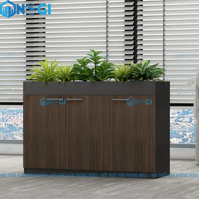 Mẫu tủ này là sự kết hợp hiện đại, vừa để lưu trữ, chứa đựng đồ đạc, vừa có thể tận dụng để trồng cây trang trí. Trồng cây cây trong văn phòng giúp cải thiện không khí xung quanh, tạo cảm giác thoải mái khi làm việc. Bạn có thể lựa chọn các loại cây phong thủy mang lại sự may mắn, thuận lợi cho công việc.
