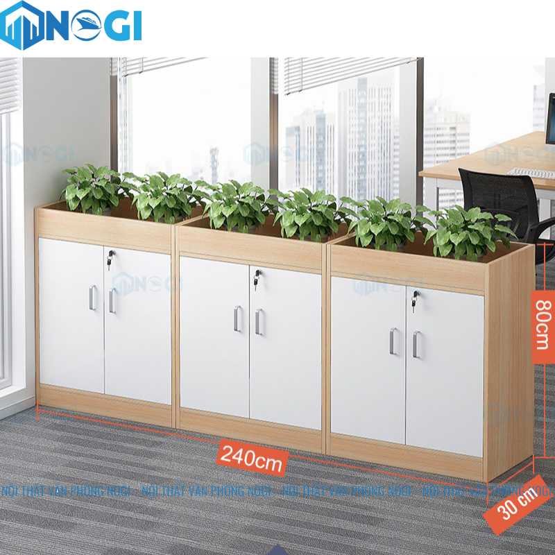 Loại tủ này được sản xuất từ gỗ công nghiệp cao cấp, mang đến độ bền cao chống cong vênh hiệu quả, phù hợp với nhiều không gian công cộng như văn phòng, bệnh viện, nhà ở,... Không chỉ vậy, bạn có thể vừa lưu trữ đồ đạc, giấy tờ vừa có thể để cây trang trí ở phía bên trên cùng của tủ.