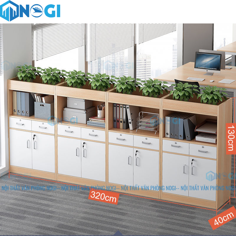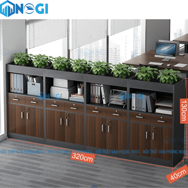 Khu vực để cây có chiều dài 10cm, rộng rãi, hoàn hảo để tạo nên một không gian văn phòng làm việc xanh lành mạnh. Phần tấm đáy có ngăn chia dày dặn nên bạn hoàn toàn tưới nước thoải mái mà không lo bị ướt đồ đạc phía bên dưới tủ.