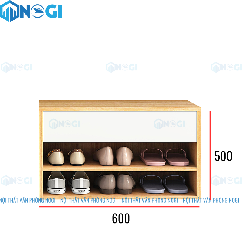 Tủ được thiết kế theo kích thước H500 x W600 x D320, thuộc kiểu hình chữ nhật nằm. Sản phẩm được chia thành 3 ngăn, trong đó hai ngăn dưới cùng để giày dép và ngăn trên có cánh cửa. Bạn có thể tận dụng phần bề mặt trên cùng của tủ để trưng bày vật trang trí.