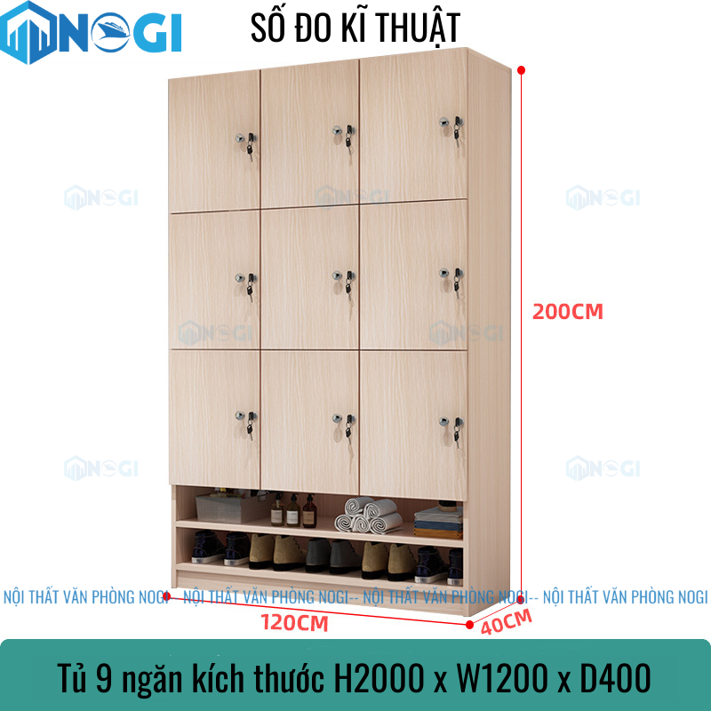 Sản phẩm này gồm 15 ngăn, trong đó có 9 ngăn kín và 6 ngăn hở. Mỗi ngăn kín được đánh số thứ tự từ 1 đến 9 nên người dùng dễ dàng nhận dạng được ngăn để đồ của mình. Ngăn họ được thiết kế với công dụng chính là để giày dép rất tiện lợi. Hiện nay có ba màu cơ bản: Màu trắng, màu vân gỗ đậm và màu vân gỗ nhạt.