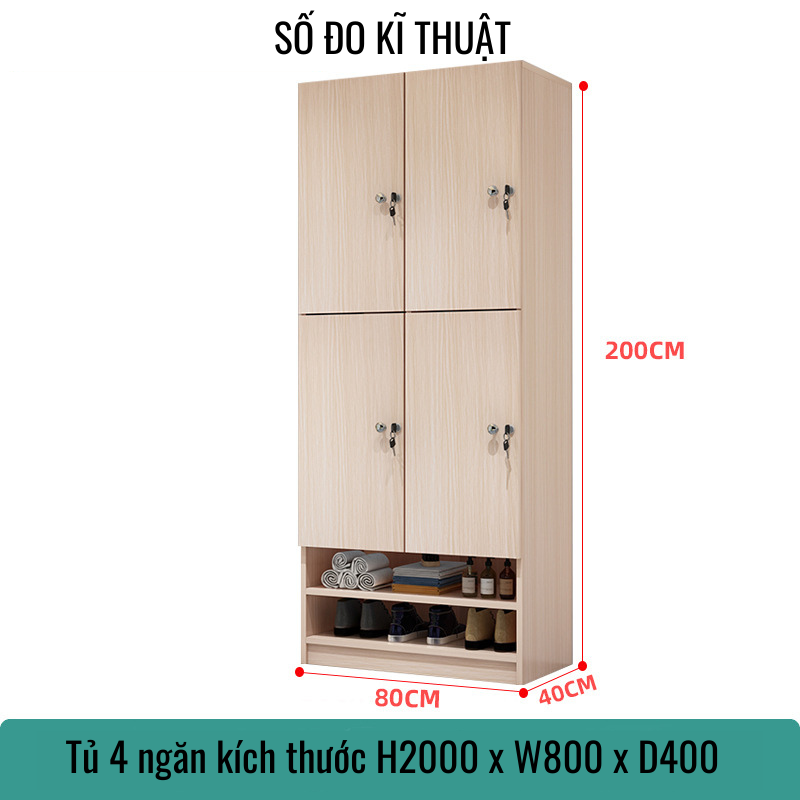 Tủ Locker gỗ 4 ngăn kệ giày LKG2N2-G: Thiết kế đơn giản, hiện đại, thông minh