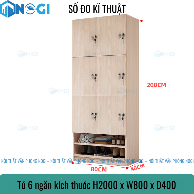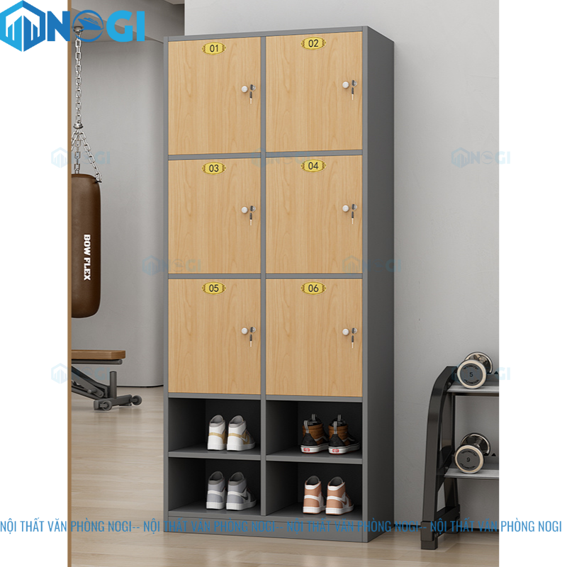 Giải pháp lưu trữ tối ưu cho văn phòng: Tủ Locker gỗ 6 ngăn kệ giày LKG2N3-G