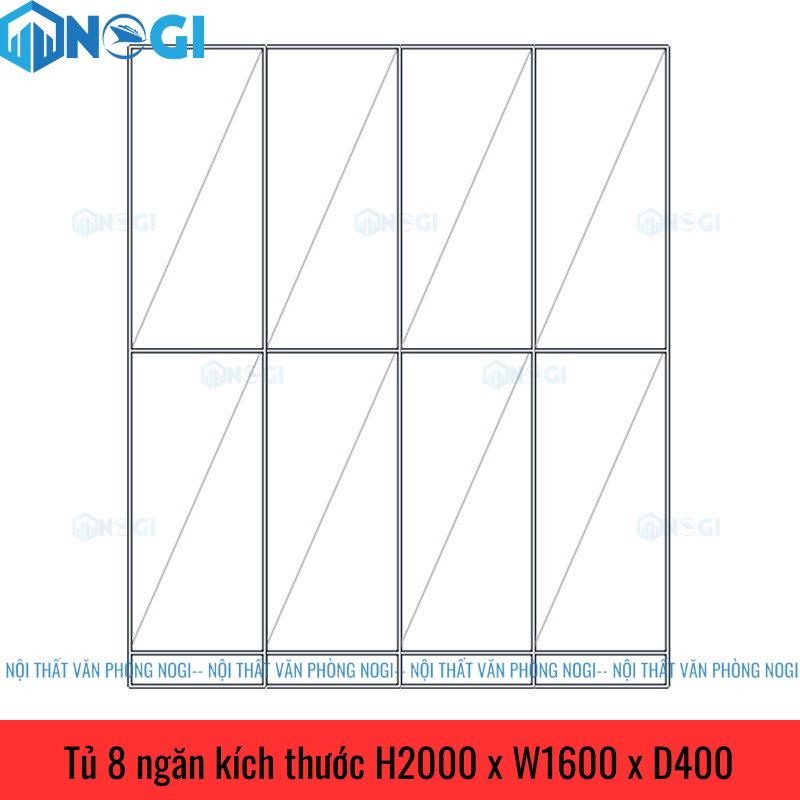 Sản phẩm này có nguồn gốc xuất xứ chính hãng tại Việt Nam. Về kích thước, tủ được thiết kế lần lượt H2000 x W1600 x D400, cao về chiều cao và hẹp chiều rộng giúp tiết kiệm diện tích căn phòng. Về cấu trúc, tủ được chia thành 8 ngăn riêng biệt, các ngăn có kích thước bằng nhau và có chìa khóa riêng.