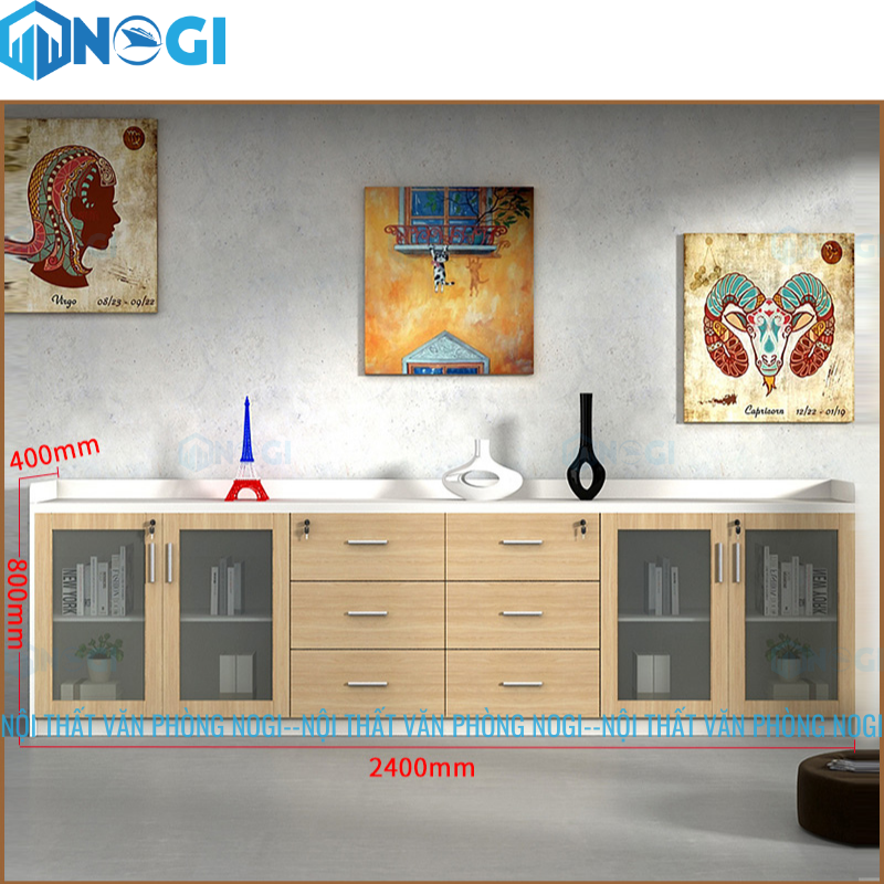 Tủ được thiết kế theo hình chữ nhật nằm, có kích thước W2400 x H800 x D400. Sản phẩm gồm 10 ngăn, trong đó gồm 4 ngăn cabinet và 6 ngăn kéo có khóa. Hơn nữa các ngăn kéo có tay cầm nắm nên việc đóng mở dễ dàng và thuận tiện hơn. Đặc biệt bề mặt tủ rộng nên bạn có thể tận dụng để đồ vật trang trí.